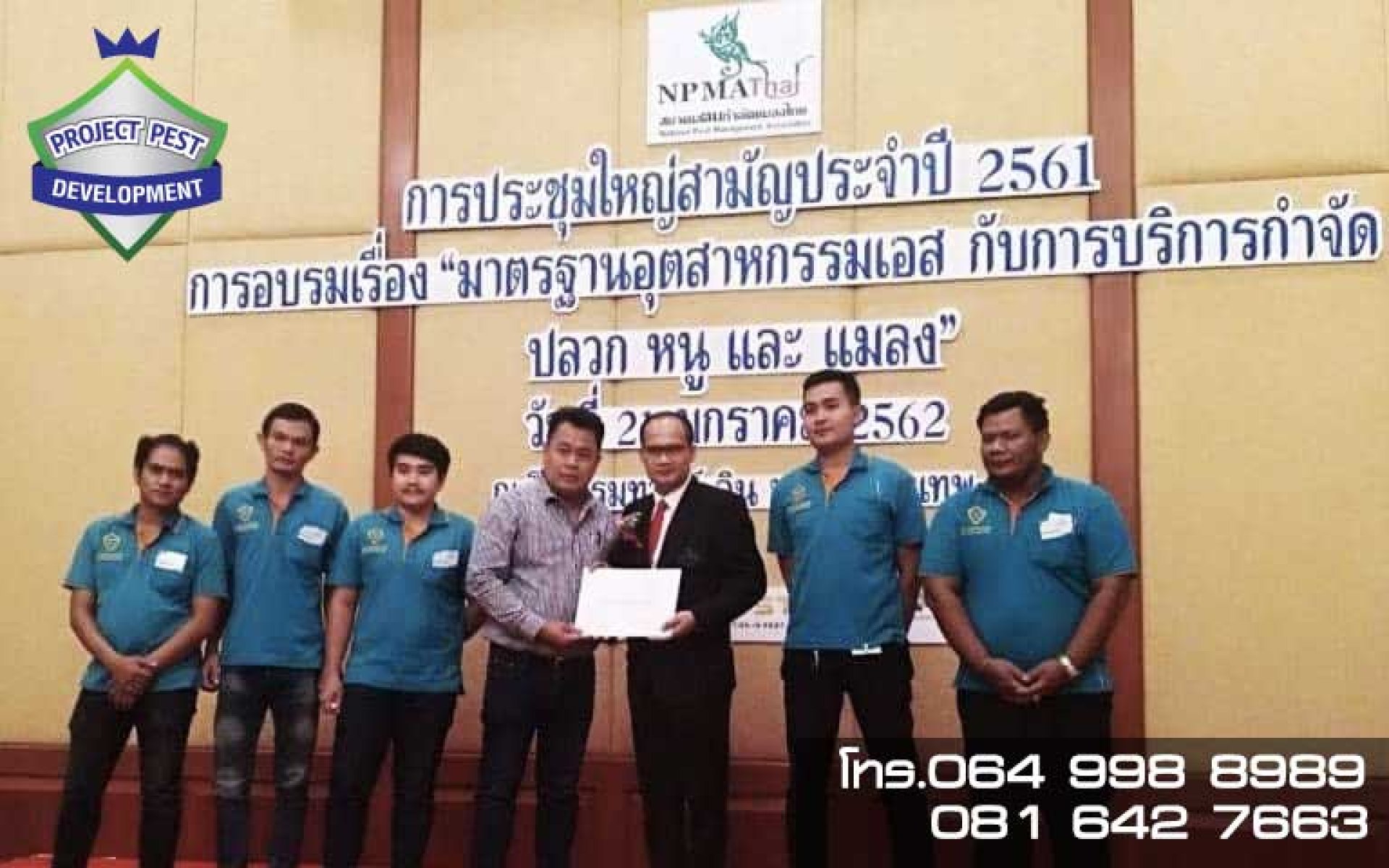 ทีมงานทุกคนผ่านการฝึกอบรมจากสมาคมคนกำขัดแมลงไทย มีใบอนุญาติมีไว้ครอบครองซึ่งวัตถุอันตราย อย.เลขที่ 2/2560 ได้ใบผ่านการอบรมผู้ควบคุมวัตถุอันตรายคือมาตรฐานหลักของ บจก.โปรเจคเพสต์ ดีเวลลอปเมนท์ ต้องพัฒนามาตรฐานที่ดีเพื่อใช้บริการได้อย่างถูกวิธีและมีคุณภาพ เน้นความปลอดภัยและปลอดภัยต่อคนพักอาศัยและสิ่งแวดล้อมรอบๆบ้าน